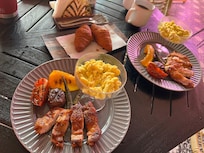 More B&B style ,Very cozy room with bathtub at balcony for my booked room style, with great view to see whole front yard huge meadow and beautiful Kenting mountain Damian, pet friendly and the house owner emphasized even the meadow use pet friendly/safe way to maintain, different types of breakfast with free fresh latte/Americano coffee everyday, 10mins drive to night marketing street , very quite place with bird/insects sinning , very relaxing stay.