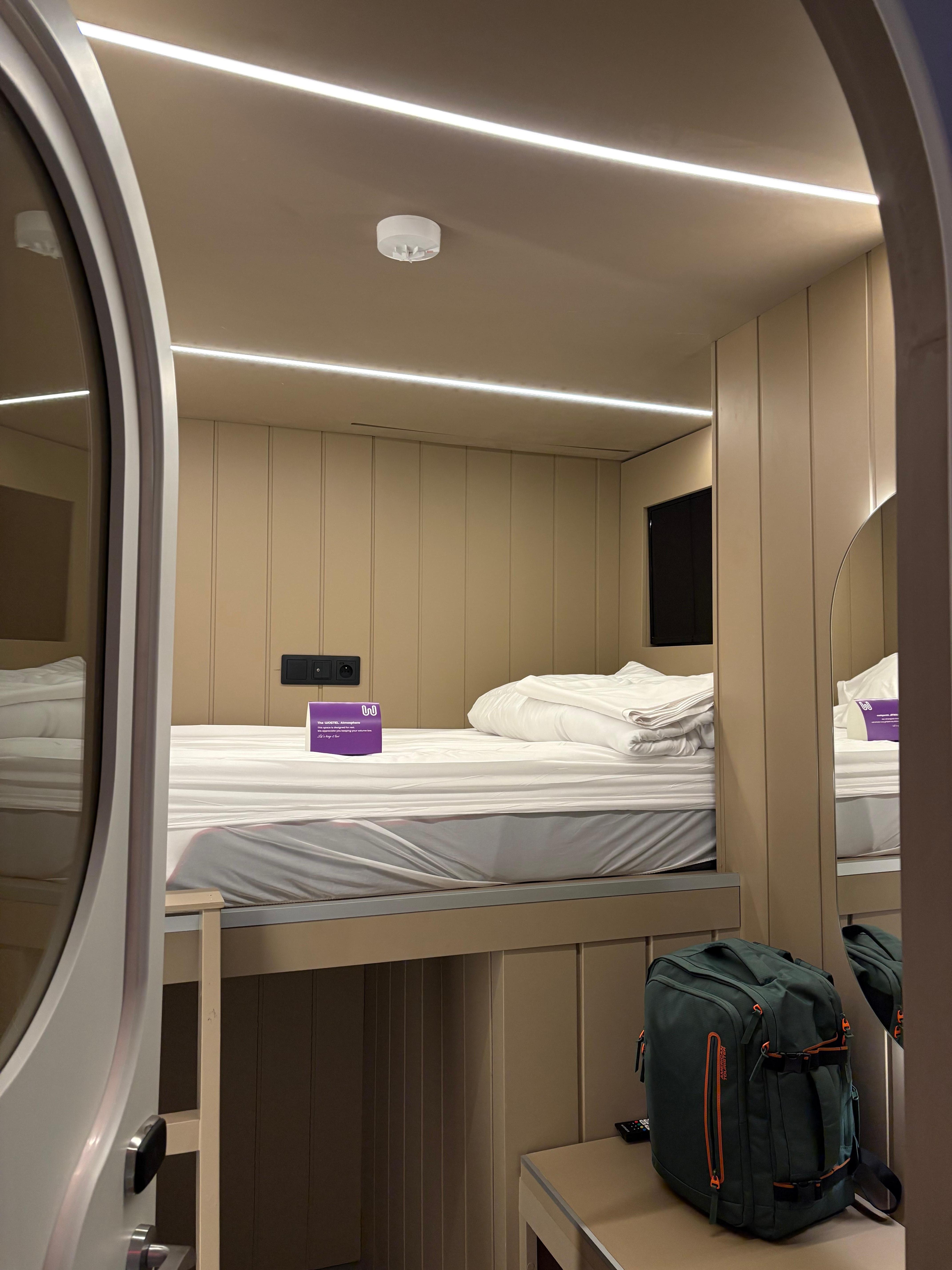 My stay at Wostel exceeded all my expectations-my pod was divine -so well designed-it was perfect. The staff were all lovely , the washing facilities very clean. I would recommend to all